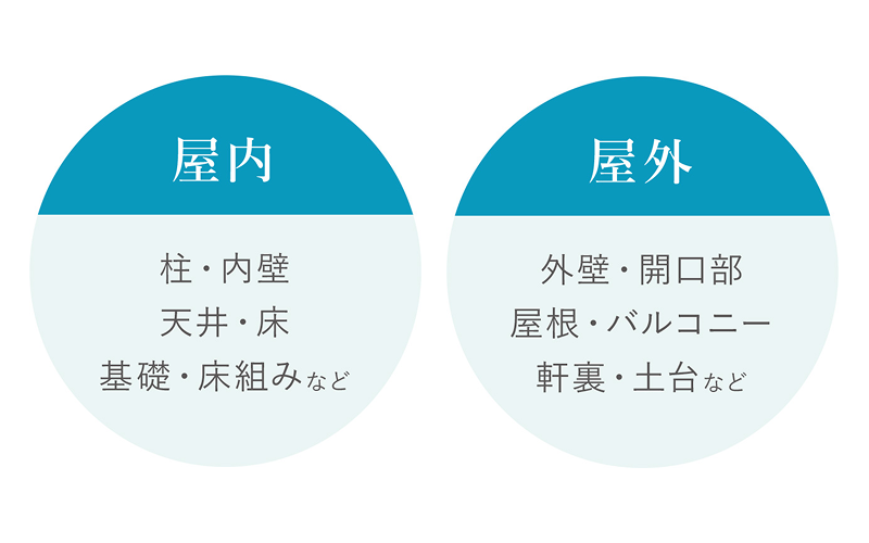 A:建物20年保証の対象となるのは、「構造耐力上主要な部分」「雨水の侵入を防止する部分」です。