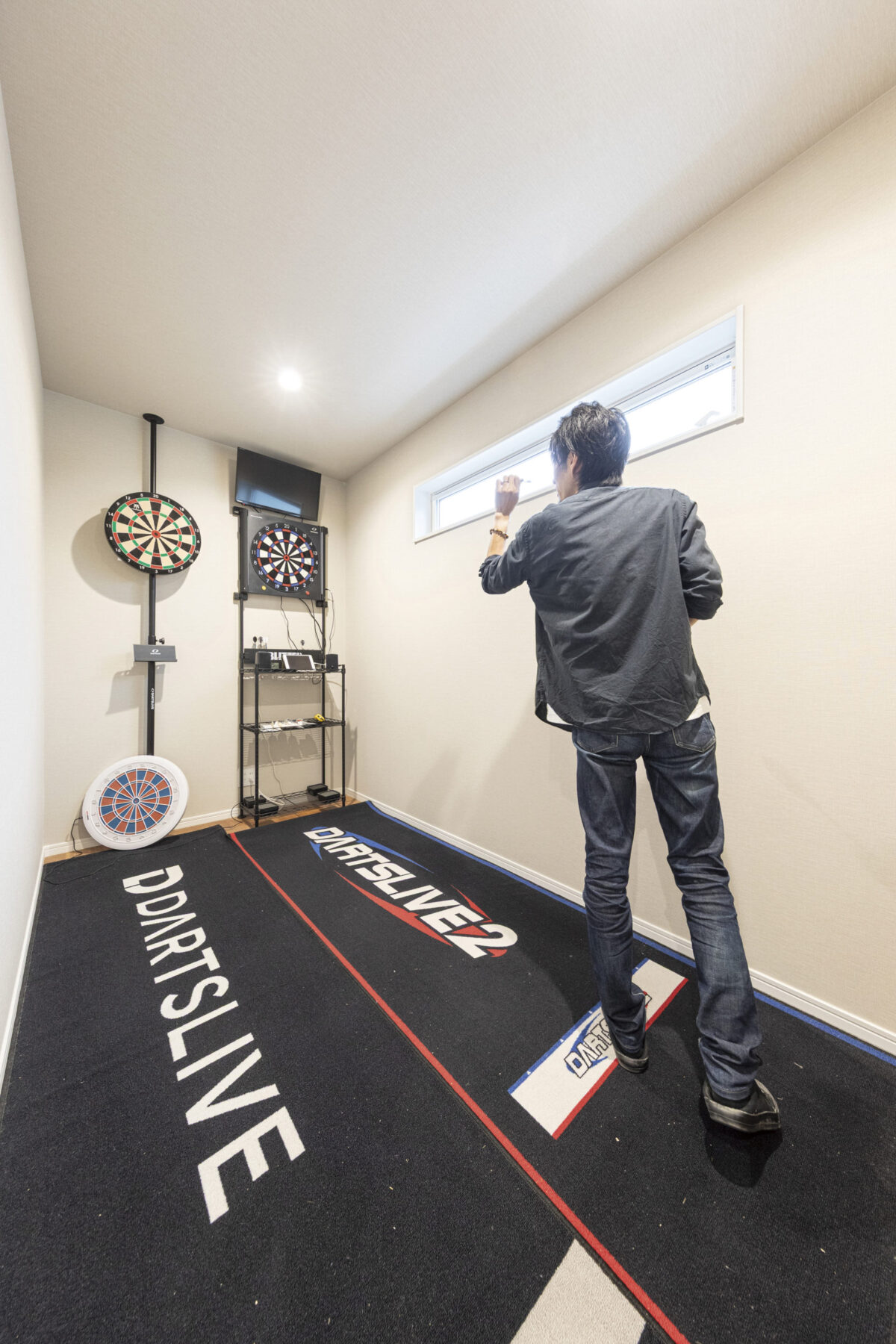 ダーツルーム K様のこだわりが詰まった趣味の部屋。ボードの高さから投げる距離まで、すべて公式大会と同仕様の本格的なダーツルーム。