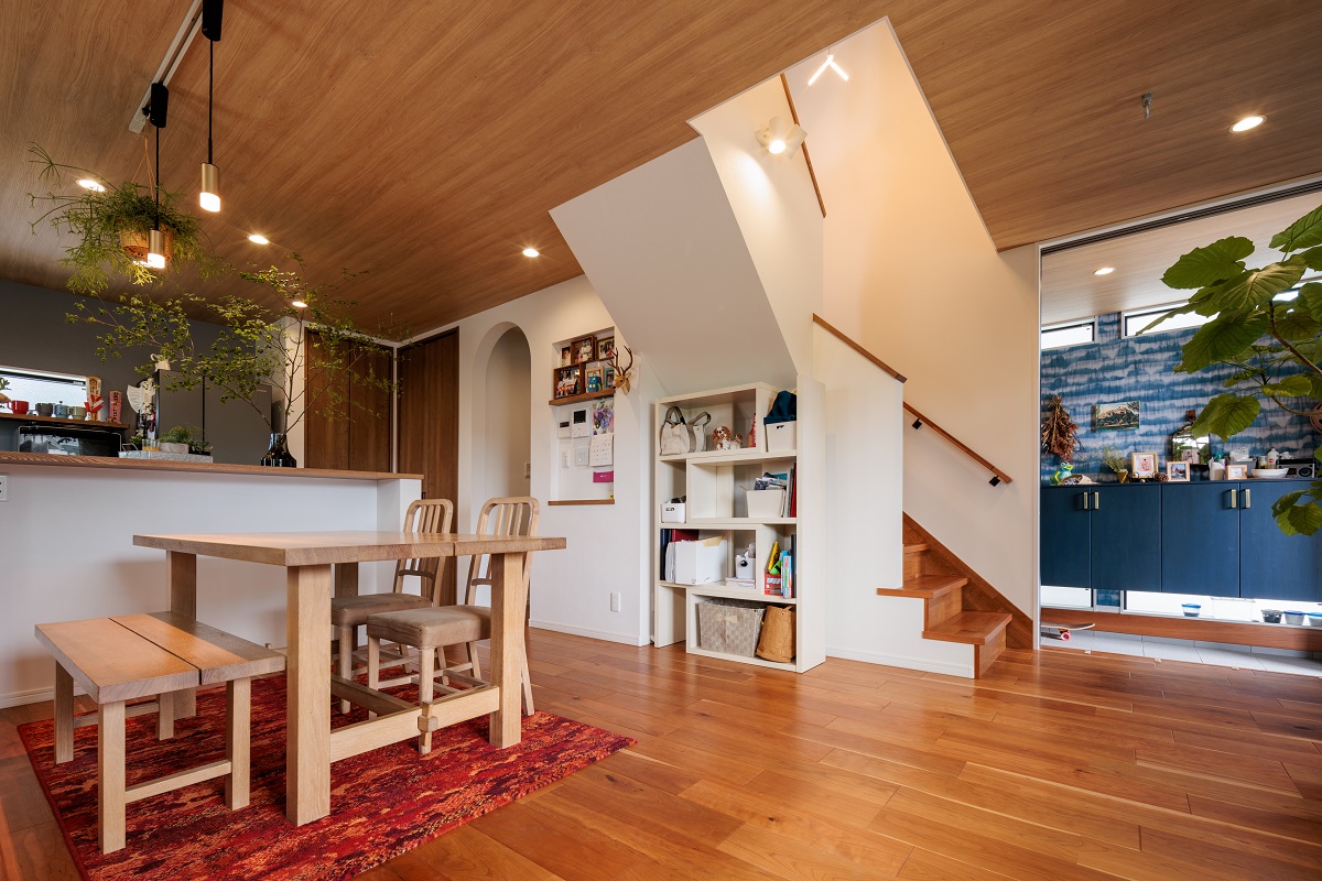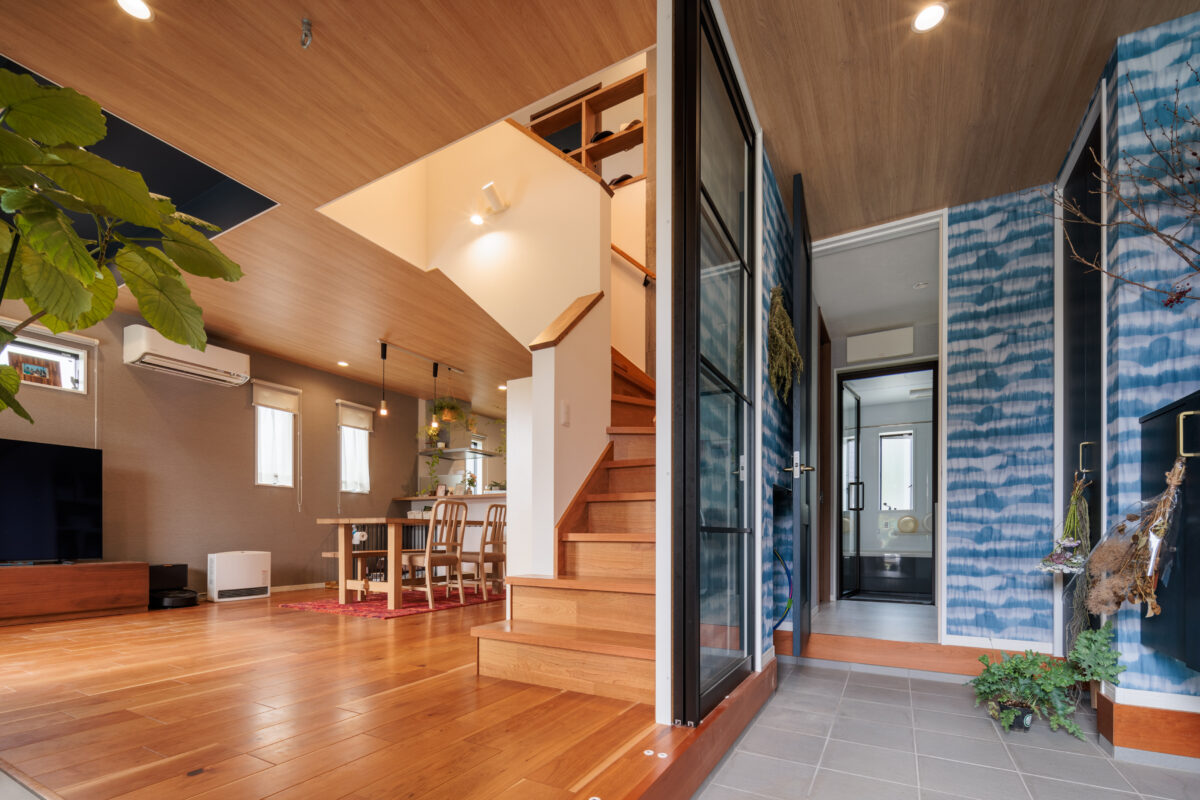 「土間リビングの家」土間からリビングへと続く開放感あふれる空間
