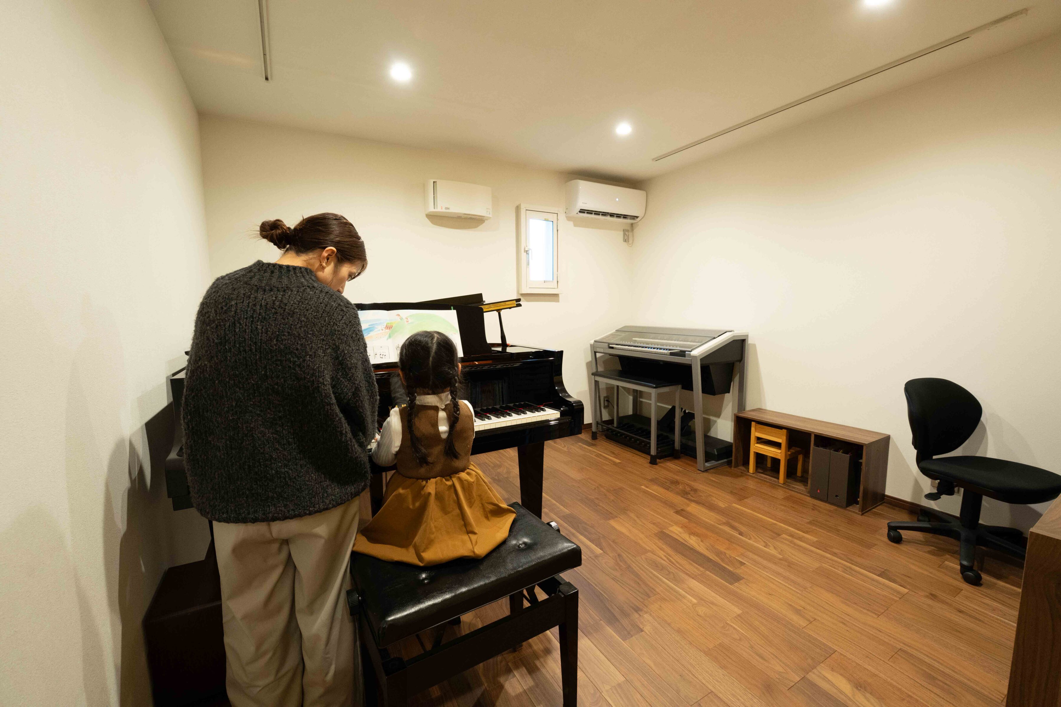 ご自宅でピアノ教室を開かれるため、2階には音漏れに配慮した専用のお部屋を設けました。「隣の家との距離が近いですが、ピアノの音が外に漏れず、しっかりとした防音性を暮らしてからも実感しています」と奥様にもご満足いただいています。
