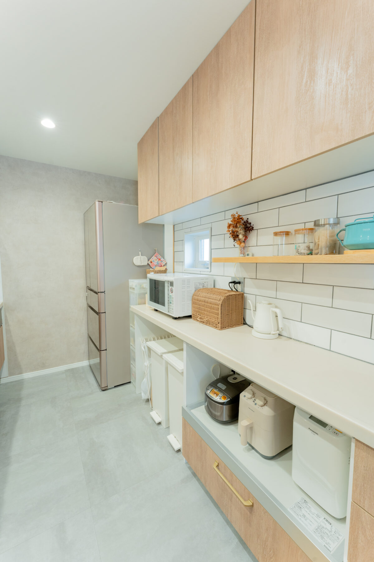 使い勝手を考慮し、十分な量のキッチン収納を確保。LDKの空間をいつでもすっきりと保つための工夫が施されています。