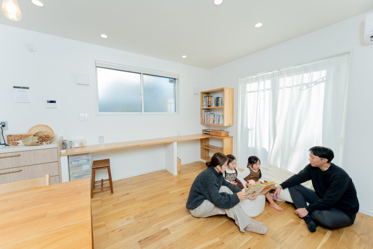 暮らしの変化を楽しみながら長く愛用できるよう、お子様の将来のスタディコーナーを造作棚で形にしました。