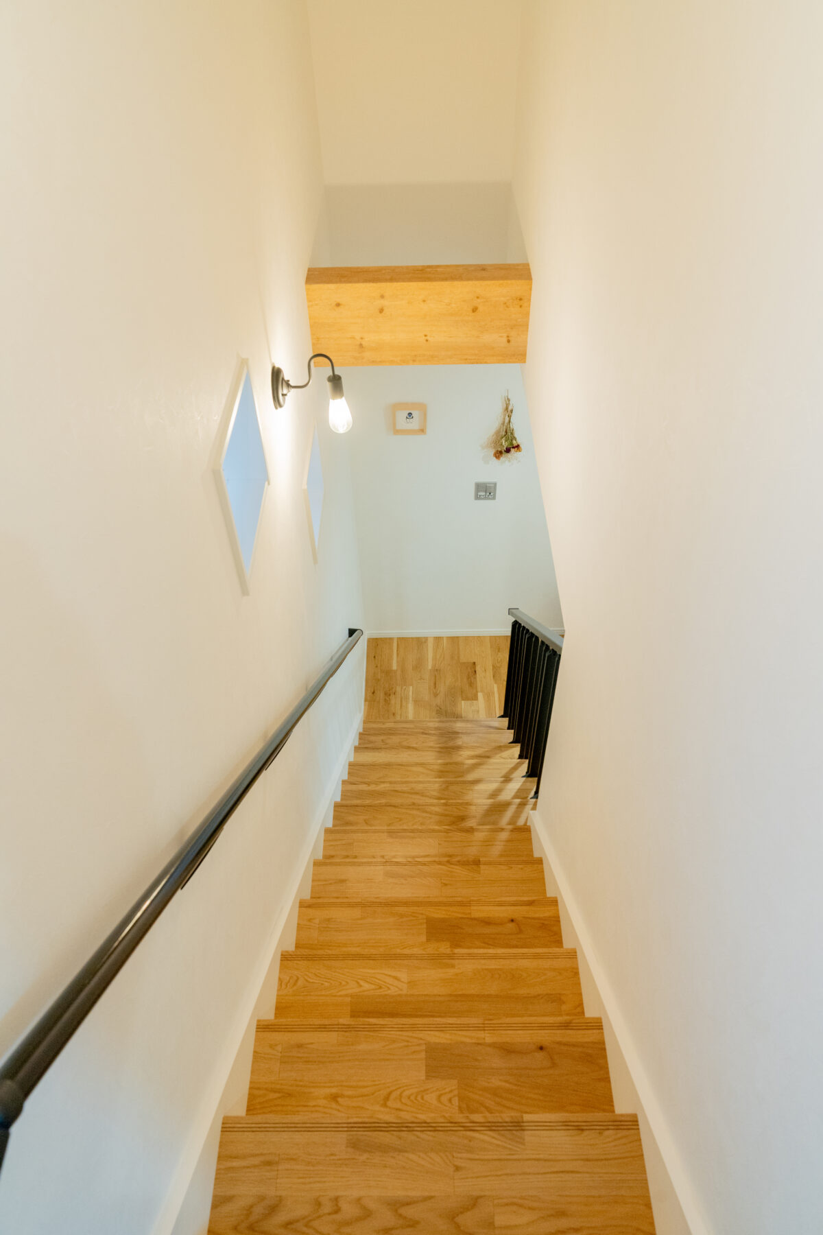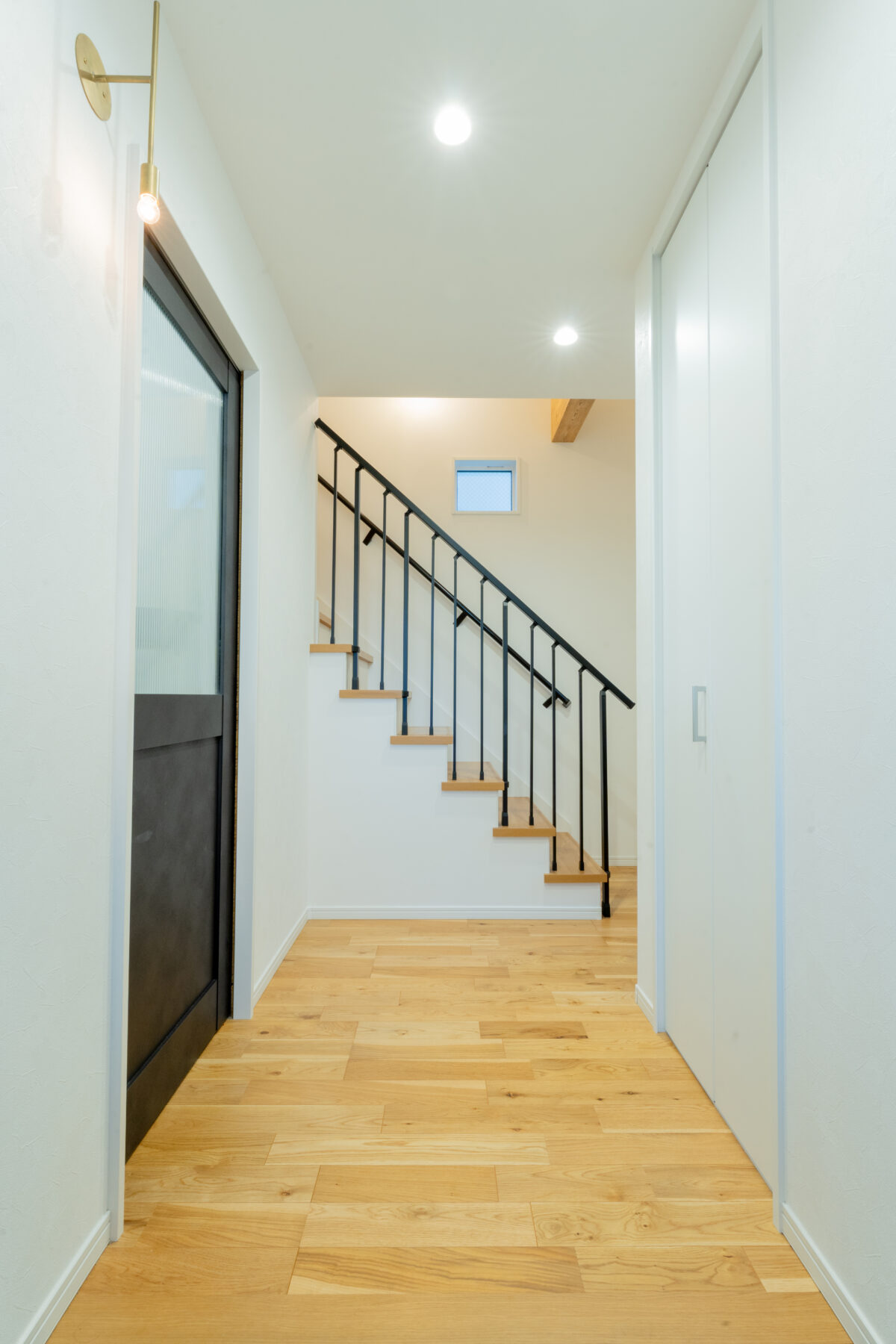 玄関を入ってすぐの場所に配置したストレート階段は、このお住まいの顔とも言える存在です。