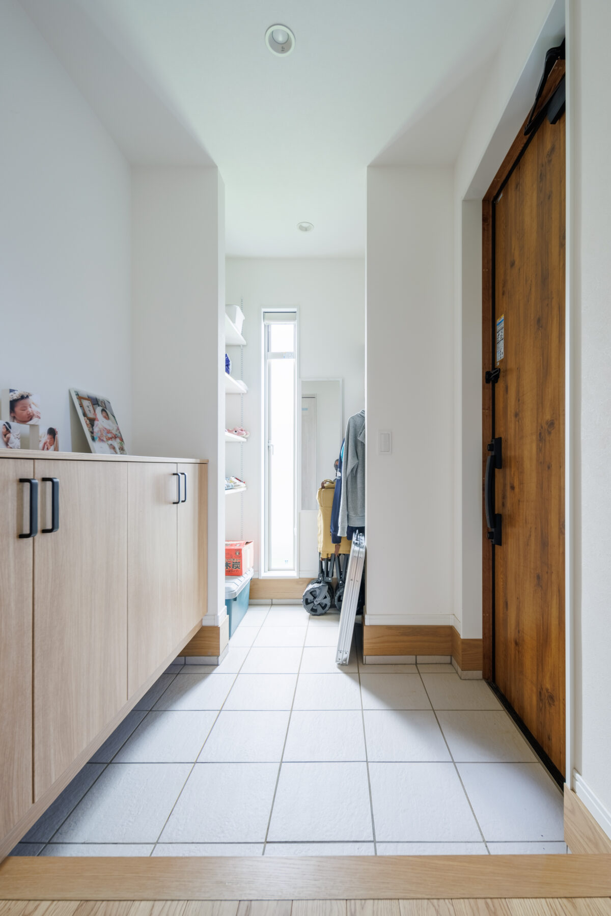 清潔感のある玄関は靴からベビーカーなどの大型アイテムもたっぷりしまえる